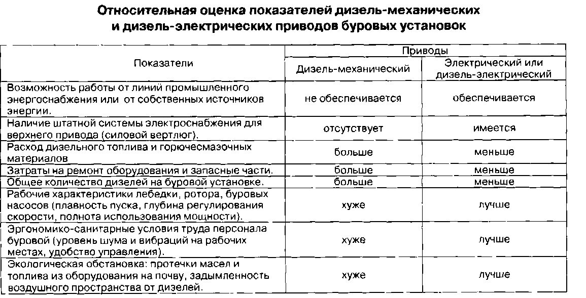 Объяснить этот процесс можно, сопоставив показатели дизель-механических и электрических приводов (см. табл. 3.9.4.1). Примечательно, что переход на рыночные формы хозяйствования в России, существенно повысив значимость экономических факторов, способствовал еще большему спросу на буровое оборудование с электроприводом.