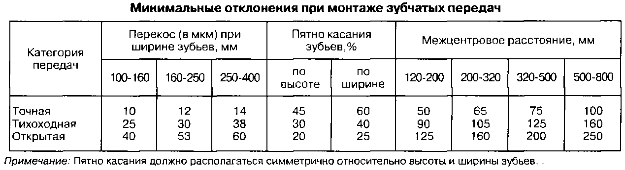 В табл. 14.1 приведены минимальные отклонения (в мм) при монтаже зубчатых передач.