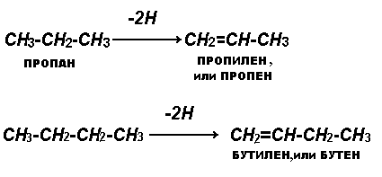 2. Углеводороды ряда этилена можно получить также дегидрированием предельных углеводородов:
