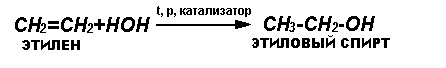 В присутствии серной и ортофосфорной кислоты этилен присоединяет воду (реакция гидратации):