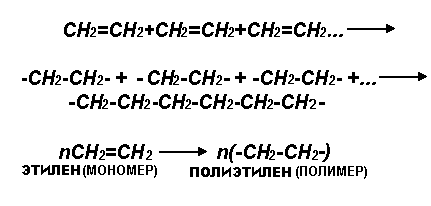 Процесс соединения многих одинаковых молекул в более крупные называется реакцией полимеризации.