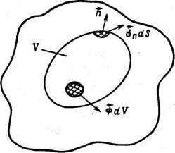 Рис. 4. Схема действия массовых и поверхностных сил в объеме V