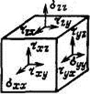 | Рис. 5. Расположение компонент тензора напряжений относительно выбранной декартовой системы координат |