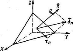 Проекции этого вектора на оси произвольной системы координат Ох1х2х3 обозначаются через σnj (j=1, 2, 3). В частности, проекции напряжений