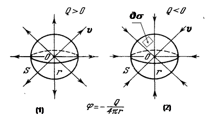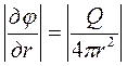 Пусть Q > 0; тогда, так как grad j направлен в сторону роста j, то v направлена по r. Если Q < 0, то v направлена по - r (рис. 6). Величина скорости равна: