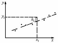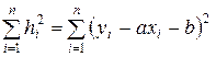 . За счет погрешностей измерений эти точки, вообще говоря, не лежат на одной прямой. Требуется подобрать оптимальную прямую, к которой наиболее близки все экспериментальные точки, то есть сумма квадратов вертикальных отклонений точек от искомой прямой должна быть минимальна. Следовательно, требуется найти значения коэффициентов а и