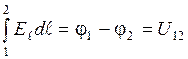 (или просто напряжением) на участке цепи 1-2 называется физическая величина, численно равная работе, совершаемой суммарным полем кулоновских и сторонних сил при перемещении вдоль цепи единичного положительного заряда из точки 1 в точку 2.