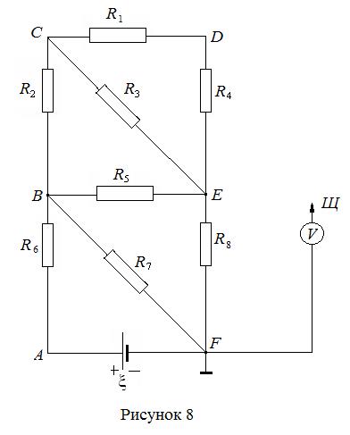 1. Пользуясь правилами Кирхгофа, рассчитать цепь, представленную на рисунке 8, считая