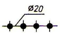 Группа отверстий на одной риске, отличающихся по диаметру от остальных на данном чертеже