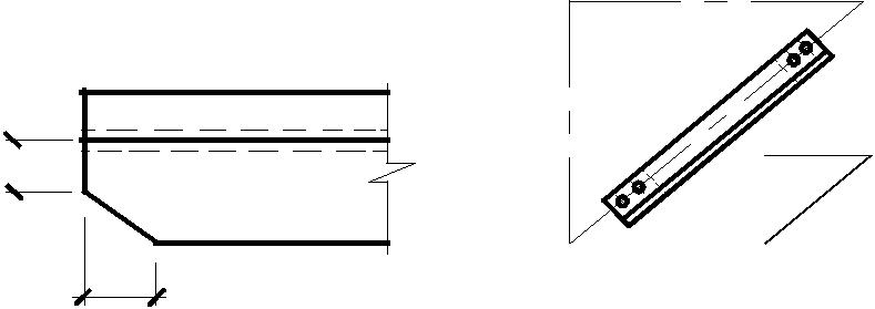 Скосы на чертежах элементов конструкции указывают линейными размерами, как показано на рисунке 3.4а, а уклон можно указать треугольником, стороны которого параллельны соответствующим линиям металлической конструкции (фермы, раскосы) - рисунок 3.4б. Треугольник располагают в непосредственной близости от этих элементов.