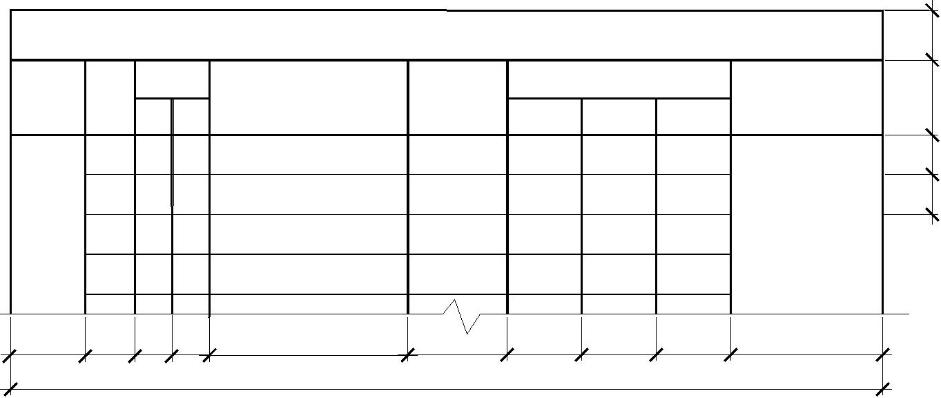 Схемы выполняют в масштабе 1:200,1:400 и мельче. На геометрической схеме металлоконструкций указывают расстояния между точками пересечения осевых линий (линий центров тяжести сечений). Размерные числа ставят над и под линиями схемы на расстоянии 2 мм без выносных и размерных линий как показано на рисунке 3.7.