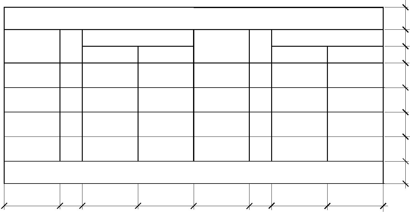 Размерыпроставляют согласно ГОСТ2.307 – 68с учетом требованийСПДС ГОСТ 21.101–97 для строительных чертежей. Размеры на чертежах проставляют только для того, чтобы установить взаимное расположение элементов, их осей и местоположение отверстий в элементах. Размеры нескольких одинаковых пролетов или других промежутков допускается