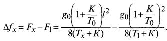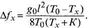 В том случае, когда контактный провод был смонтирован с начальной стрелой провеса/j, при изменении натяжения компенсированного несущего троса с Т1 на Тх (Тх < Т1) стрела провеса контактного провода увеличится на