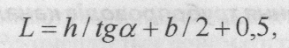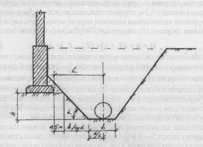 where h - distance in height between the sole foundation talotkom pipes, and tg a- slope angle (with trenches without attachment); b-width of the trench, the city