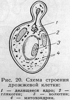 | Ядро | В каждой клетке имеется чётко ограниченное от цитоплазмы ядро, его наличие является главным отличительным признаком дрожжевой клетки от бактериальной. |