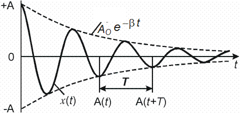 Зависимости x(t) и A(t) для затухающих колебаний показаны на рис. 2.