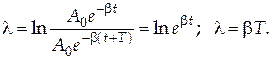Логарифмический декремент затухания численно равен натуральному логарифму отношения амплитуд затухающих колебаний, взятых через промежуток времени, равному периоду колебаний: