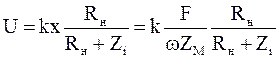 где F – действующая на диафрагму микрофона результирующая сила звукового давления; U0 – приложенное к микрофону постоянное напряжение; m – коэффициент модуляции; Ri – внутренне сопротивление микрофона; Rн – сопротивление его нагрузки; n – коэффициент трансформации; x – смещение; k – отношение коэффициента модуляции к величине смещения диафрагм микрофона.