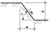 | Рис. .. Параметры откоса: a – заложение откоса; h – глубина выемки; – угла естественного откоса; m – коэффициент откоса |