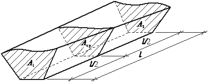 Для того чтобы определить объем выемки грунта в траншее, ее условно разбивают вертикальными сечениями на участки (рис. 5.11), а затем вычисляют объем получившихся призматоидов (неправильных призм) по приближенным формулам