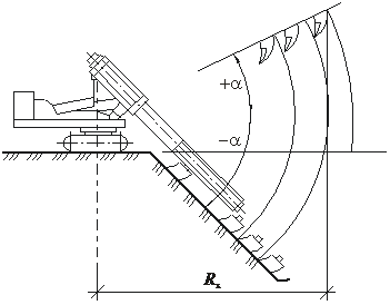 · перемещении ковша к месту разгрузки и обратно путем уменьшения угла поворота стрелы;