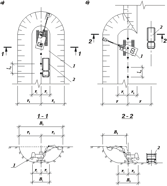 Если это условие не соблюдается, выбирают другую вместимость ковша или большее количество экскаваторов.
