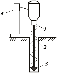 Вращательное шнековое бурение обеспечивает проходку вертикальных скважин диаметром до 200 мм и глубиной до 25 м с частотой вращения бурового снаряда 1,7...3,7 с-1.