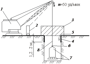6 – канатный замок; 7 – буровой инструмент (долото+штанга); 8 – канат (штанга)