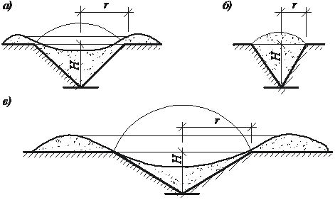 r – радиус воронки; H – глубина воронки