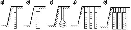 г – многорядное; д – многорядное с расширением заряжаемой части