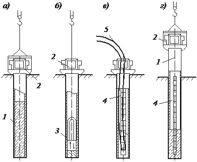 Рис. 13.13. Способы погружения свай в вечномерзлый грунт: