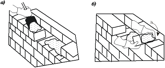 Рис. 14.24. Схемы работы звеньев при кирпичной кладке стен: