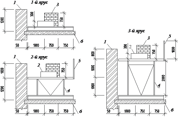 4 – подмости; 5 – защитное ограждение подмостей; 6 – перекрытие