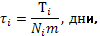 где Ti – трудоемкость работ соответствующего потока, чел.-дн.;