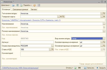 Так выглядит правильно выгруженный товар с типом алкоголь