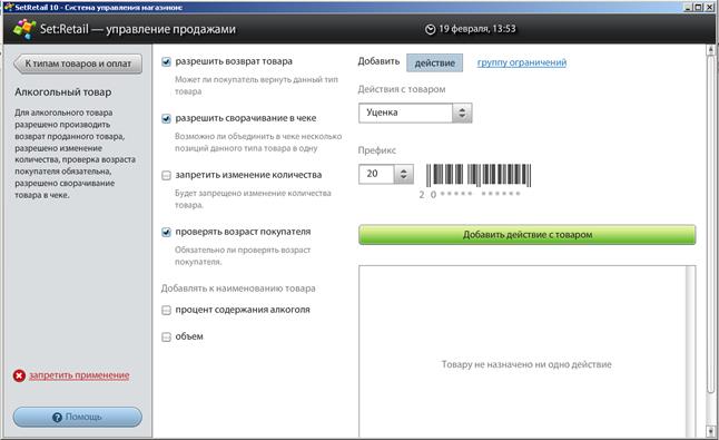 При продаже определенных типов товаров в SetRetail10 существует возможность, контроля возраста покупателя
