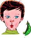 Стручок фасоли. Изобразить створки фасоли. Челюсти в спокойном состоянии (счет «раз», «два»). «Стручок лопнул»—движение нижней челюсти вперед (на счет «три»):