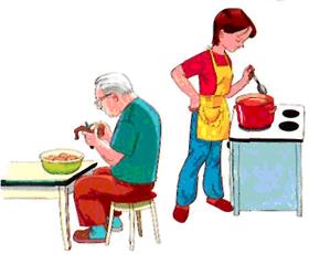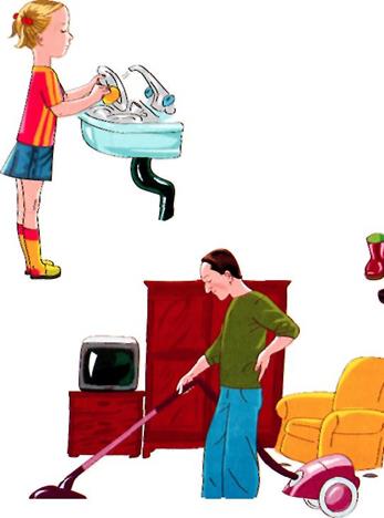 | Показать: мама, папа, бабушка, дедушка и сестра выполняют какую-либо домашнюю работу. |