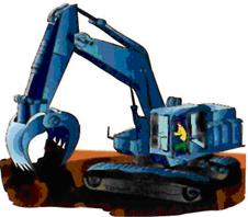 Работающий экскаватор. Выдвигать нижнюю челюсть вперед, а затем оттягивать ее назад.