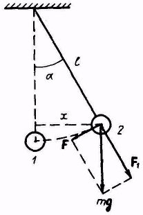 F=-mgsinα, пропорциональная смещению. Знак минус указывает, что сила направлена в сторону, противоположную смещению.