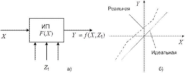 Рис. 2.3. Структурная схема измерительного преобразователя (а) и его функция