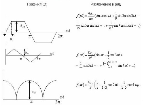 Явления, происходящие в линейной электрической цепи при периодических, но несинусоидальных напряжениях, проще всего поддаются исследованию, если кривую напряжения разложить в тригонометрический ряд Фурье: