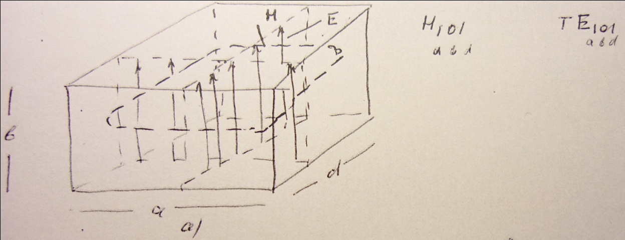 Таким образом, простейшими типами поперечно-электрических колебаний в прямоугольном объемном резонаторе являются