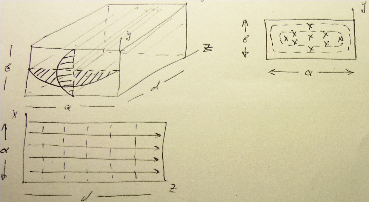 Его будем рассматривать как отрезок прямоугольного волновода определенной длины, на концах проводящими стенками. Для исследования волновода применим прямоугольную систему координат, и поле в резонаторе представим как результат наложения прямой и отраженной волны.
