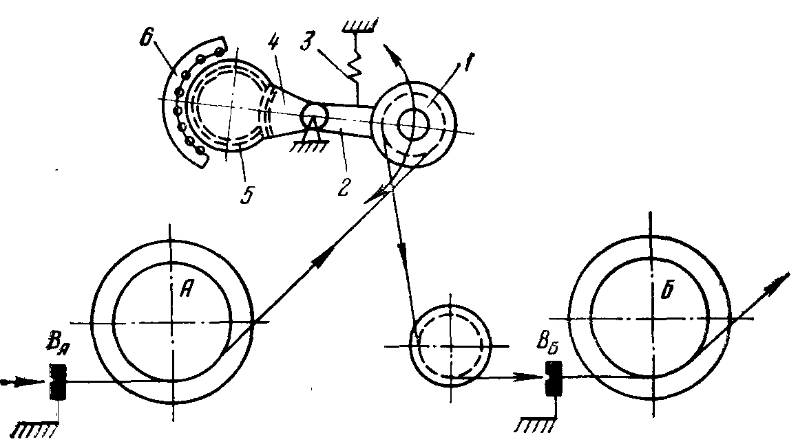 У станов многократного волочения петлевого типа регулировка скоростей тянущих барабанов осуществляется за счет изменения положения натяжных роликов (балерин), связанных с реостатами цепи эл. двигателей приводов барабанов.