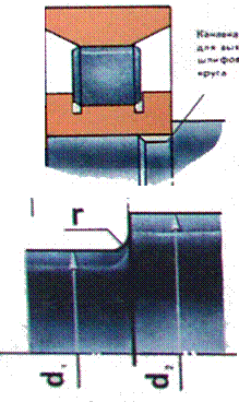 но не больше радиуса или фаски устанавливаемой на месте детали.