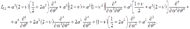 система уравнений моментной теории цилиндрической оболочки в перемещениях принимает вид: