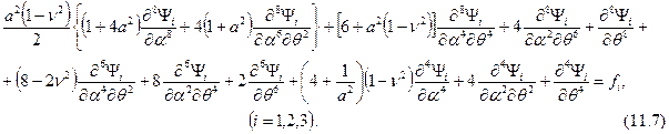 После подстановки сюда величин внутренних усилий согласно (8.4) и приведения подобных членов в каждом уравнении с использованием дифференциальных операторов вида: