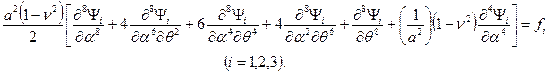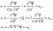 Компоненты вектора перемещения произвольной точки оболочки могут быть выражены через данную функцию по формулам: