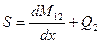 - сдвигающее усилие в оболочке на её кромке, направленное вдоль оси балки. Последнее слагаемое в уравнении (11.24) отражает разность уровней боковой грани срединной поверхности оболочки на контуре и оси балки.